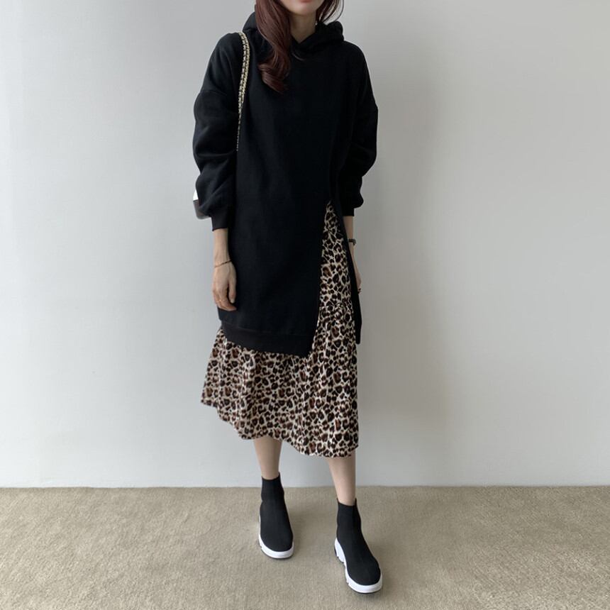 ◎【送料無料】パーカー ワンピース ロング丈ワンピ 重ね着 フェイクレイヤード レディース 秋冬新作