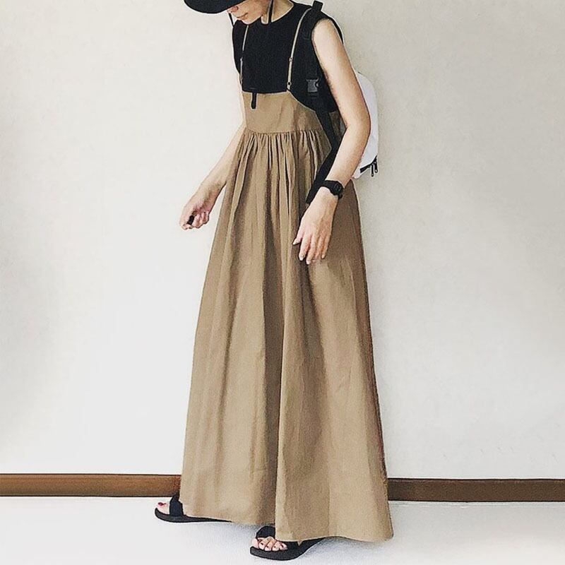 ◎【送料無料】2026年夏新作 ワンピース ロングワンピース マキシ丈 サスペンダーワンピース
