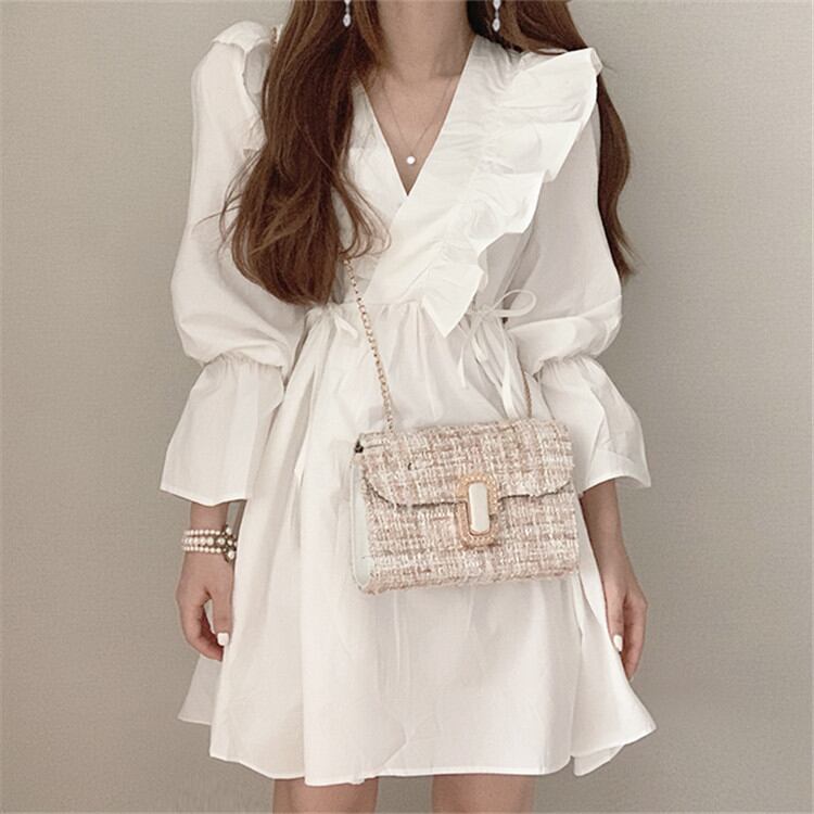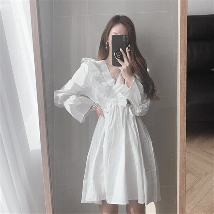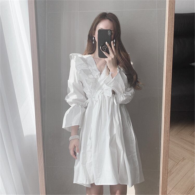 韓国ファッション Vネック 気質 Aライン 簡約 お出かけ 長袖 デザインセンス