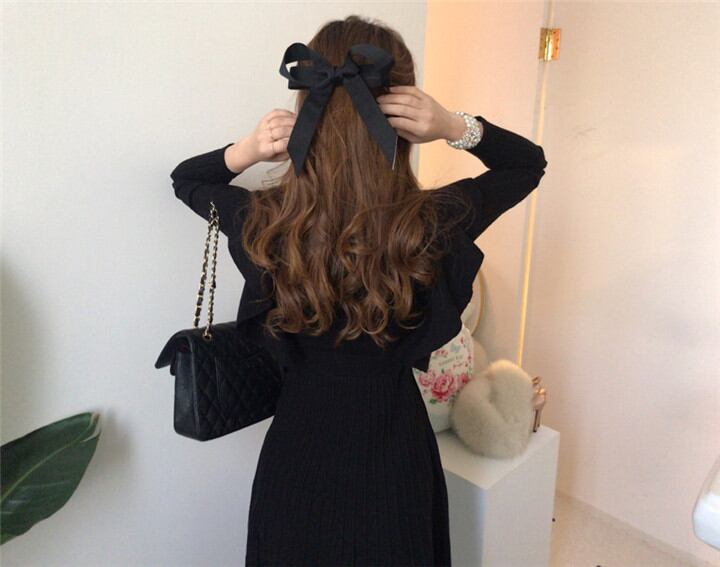 フリル 腰を括る ニット ワンビース セーター 中・長セクション 百掛け 上品映え デザインセンス