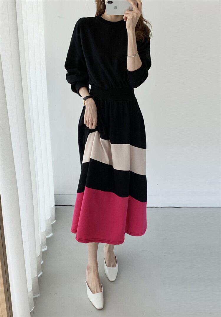 韓国ファッション レトロ 長袖 INSスタイル ドット シフォンドレス 気質 スリム