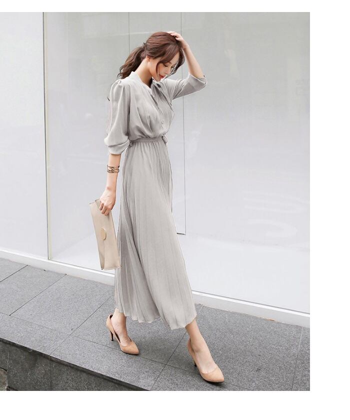 ◎【送料無料】ワンピース ロングワンピ シフォンワンピース プリーツスカート 体型カバー 大人の魅力 エレガント 4色展開