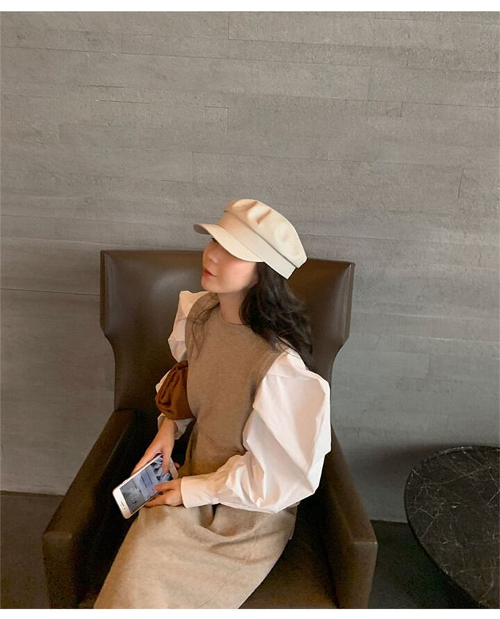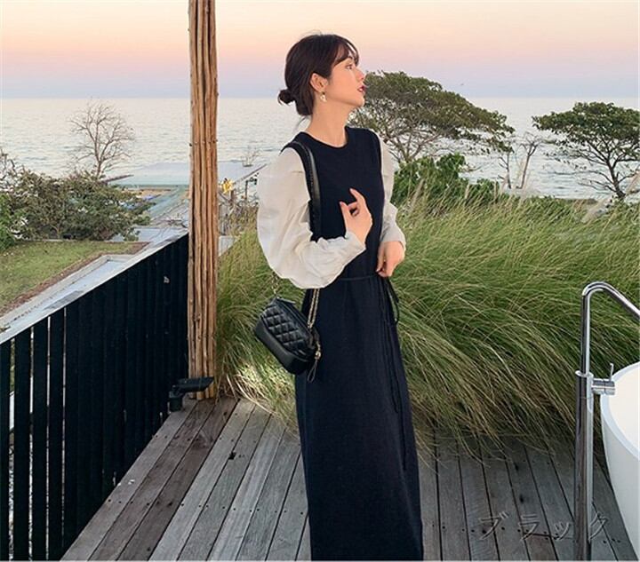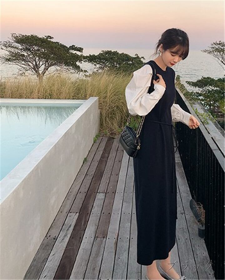 ◎【送料無料】魅力を増すコツ 韓国ファッション 全2色 長袖ワンピース sweet系 ボリューム袖 切り替え シャーリング
