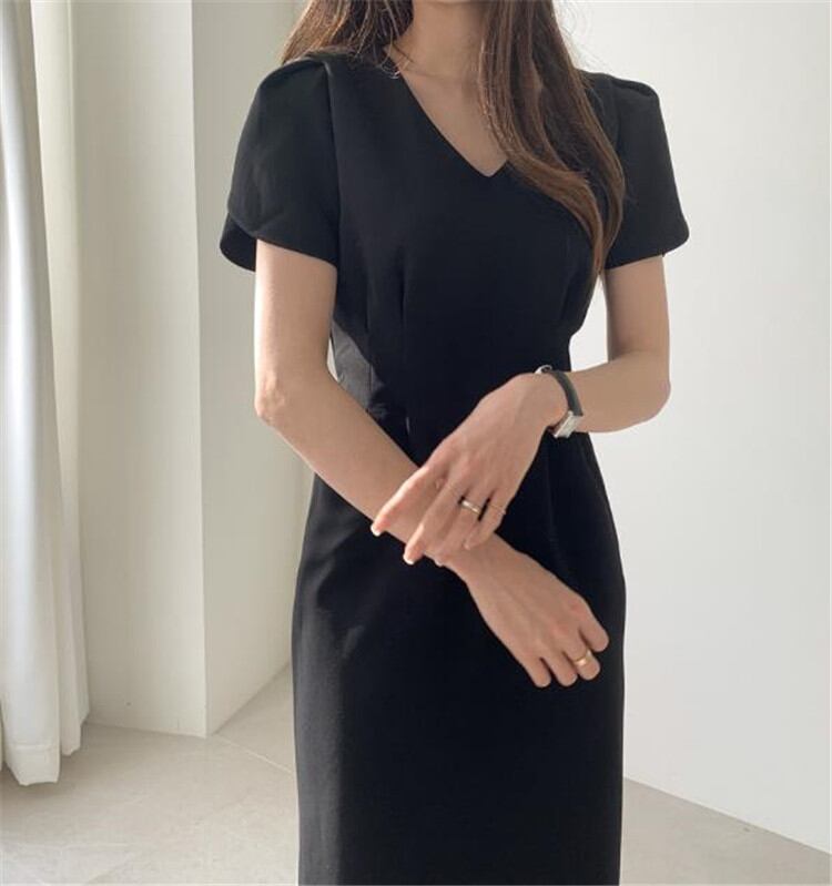 INSスタイル 高品質 Vネック シンプル 半袖 新品 気質 ロングスカート スリム