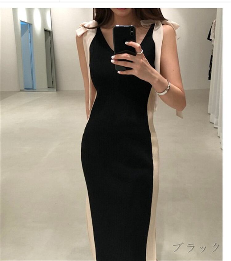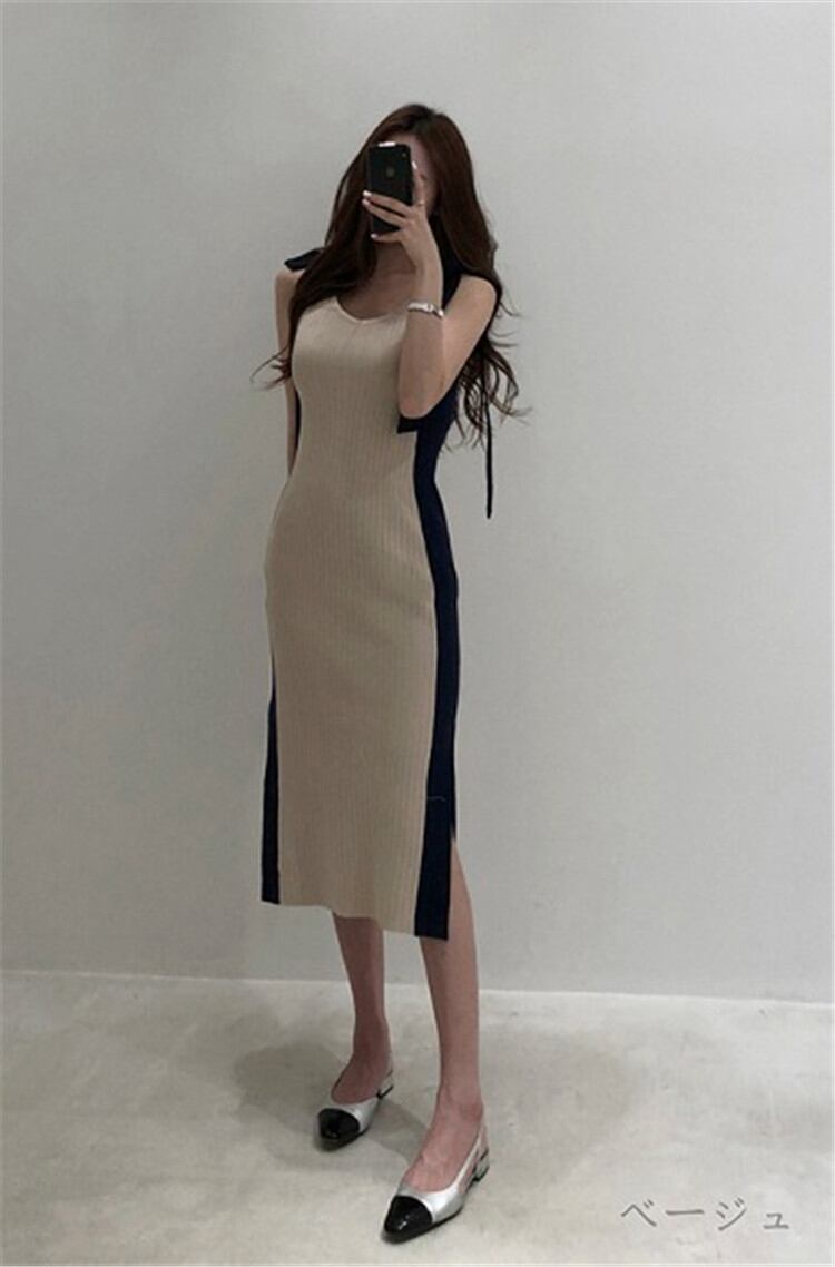 安セール ニットワンピース 羽織り ノースリーブ カットソー