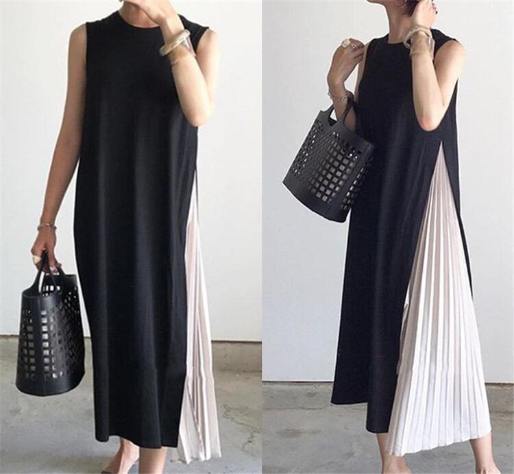 ◎【送料無料】海外セレブ人気商品 2020 新品 ワンピース フリル 切り替え バイカラー 着痩せ シンプル カジュアル