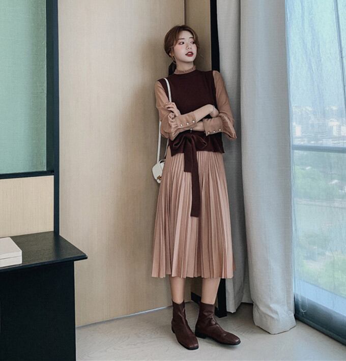 ◎【送料無料】シフォンワンピース ロング丈ワンピース 2way着 レディース 長袖 2点セット Aライン 春新作