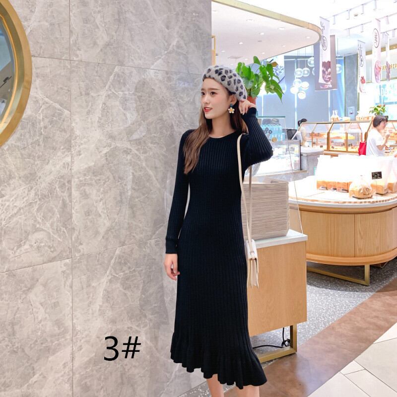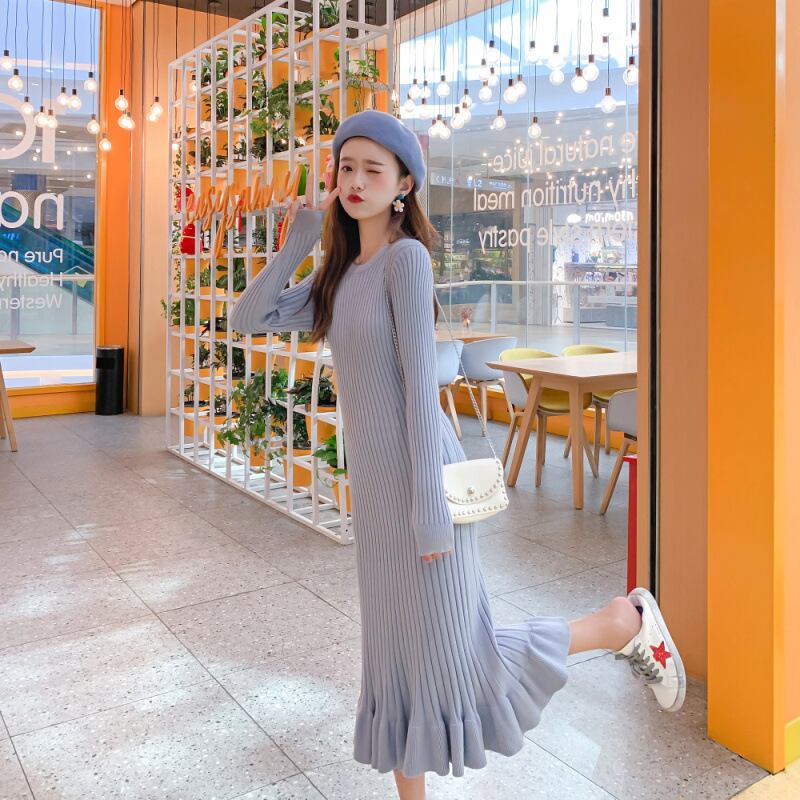 ◎【送料無料】丸首 ニットワンピース ロング丈ワンピース 長袖ワンピース ケーブル編み 秋冬新作 無地 おしゃれ
