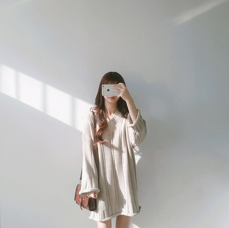 ◎【送料無料】長袖ワンピース ニットワンピース Vネックワンピース 膝丈ワンピース ケーブル編み 無地 おしゃれ