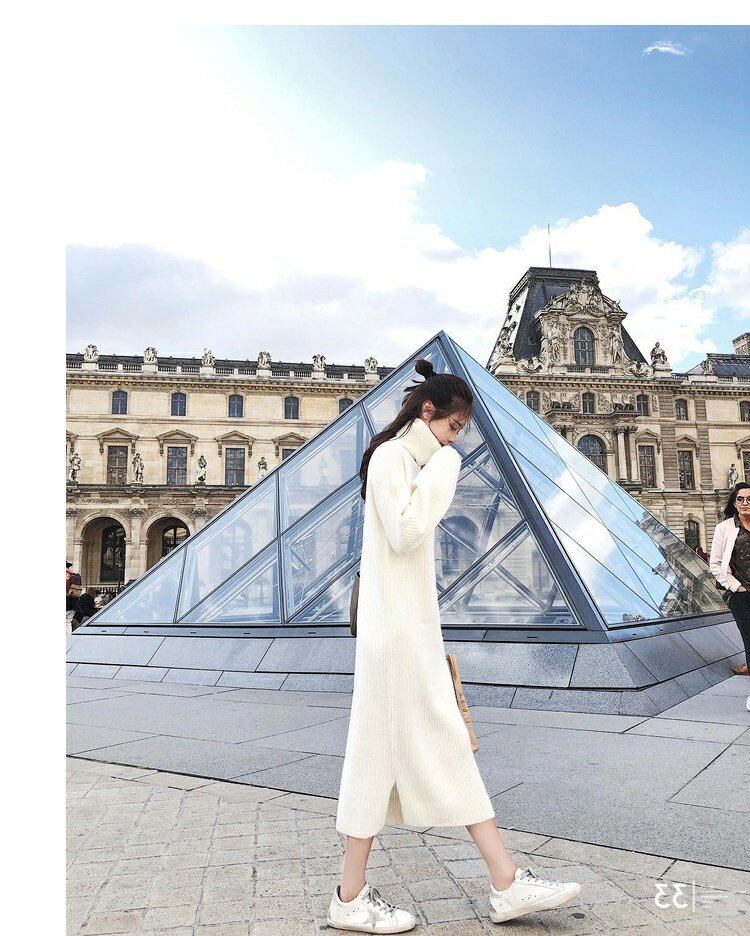 ◎【送料無料】秋冬新作 ニットワンピース 長袖ワンピース ハイネックワンピース ロング丈 無地 厚手