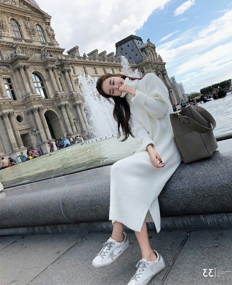 シンプルなデザインのロングワンピースのように1枚でオシャレに。