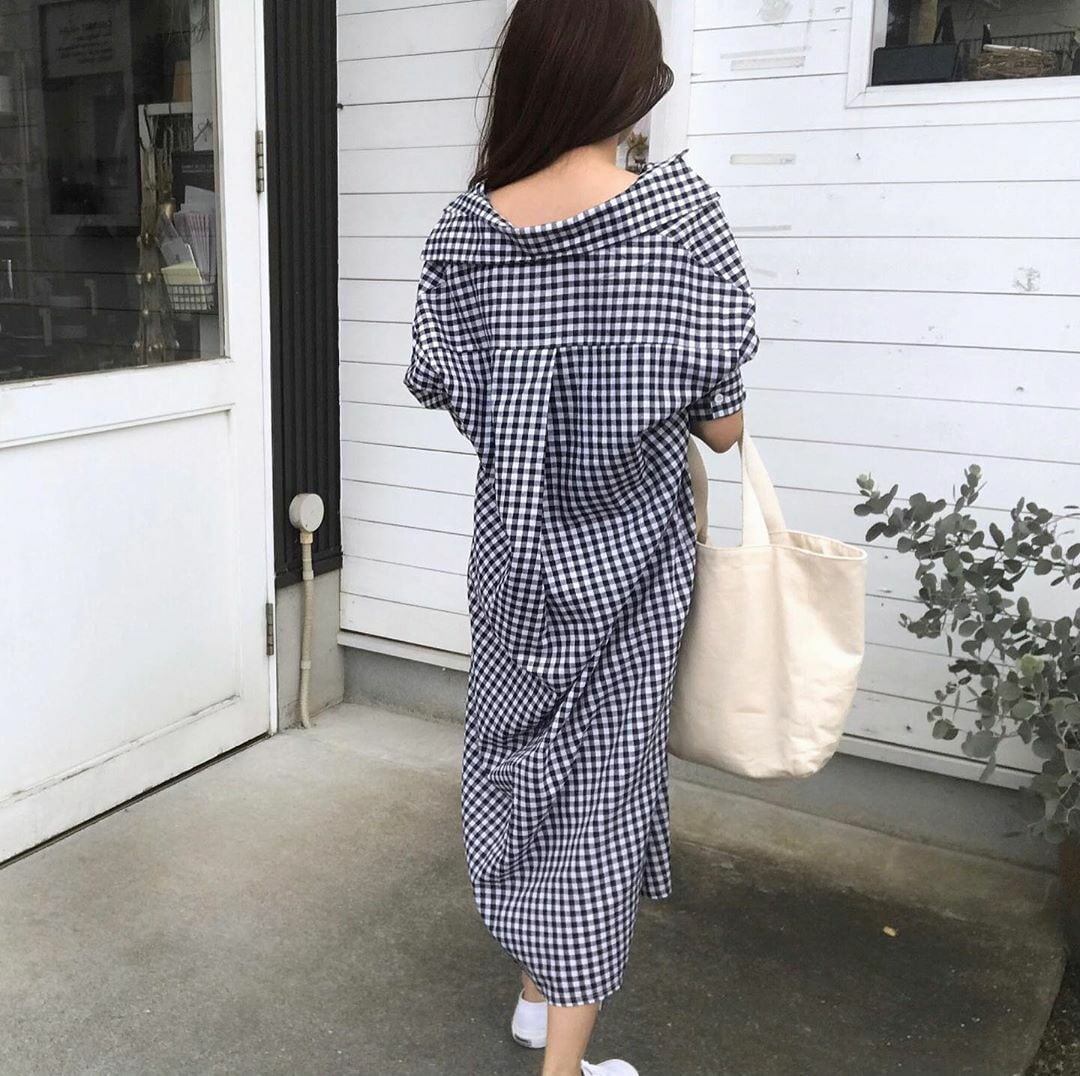 ◎【送料無料】2022春夏新作 チェック柄 シャツワンピース ロングシャツ 1枚で2役 体型カバー レディース カジュアル