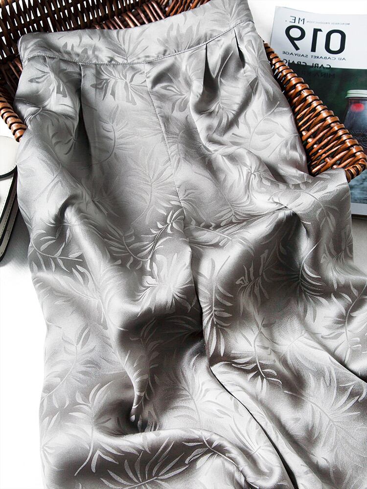 ◎【送料無料】カジュアルパンツ ジャカード 伸縮性のあるウエスト ハイウエスト ワイドレッグパンツ レディース