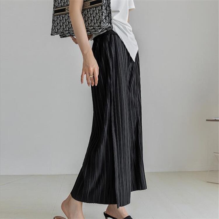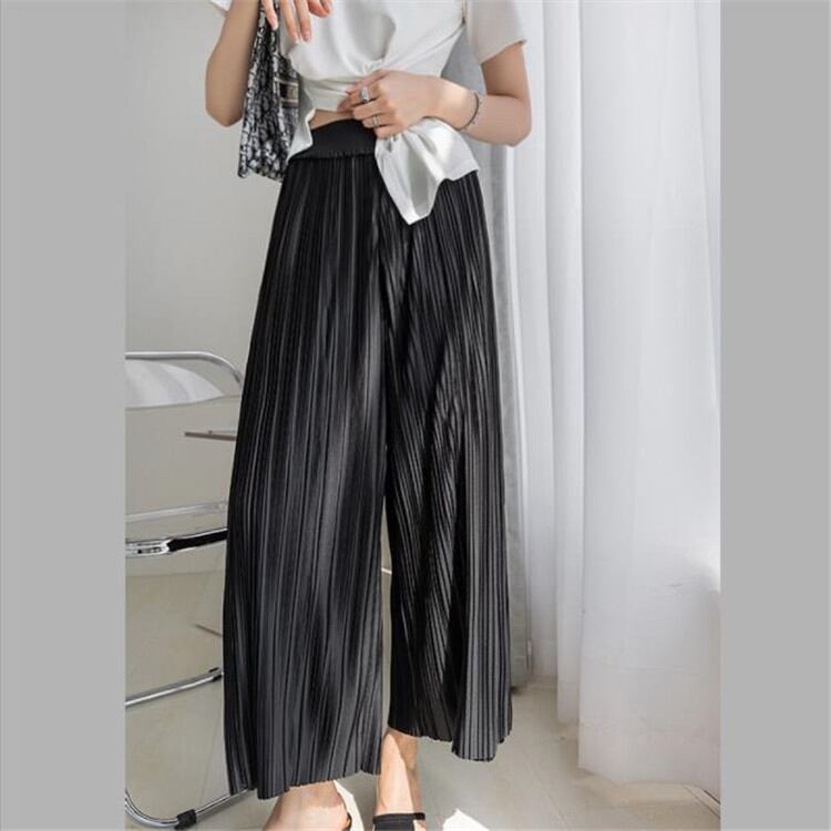 ◎【送料無料】ワイドレッグ 九分丈パンツ 夏 薄い 大きいサイズ カバーする肉 スリム 折り目 ゆったりする