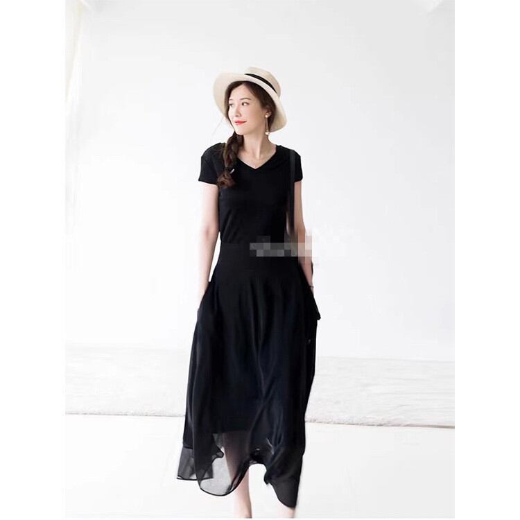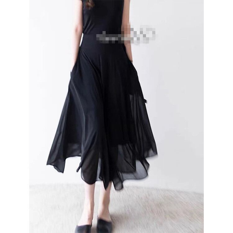 レトロ 縫付 シフォン 無地 中長セクション Aラインスカート スリム OL 通勤する 2022年夏