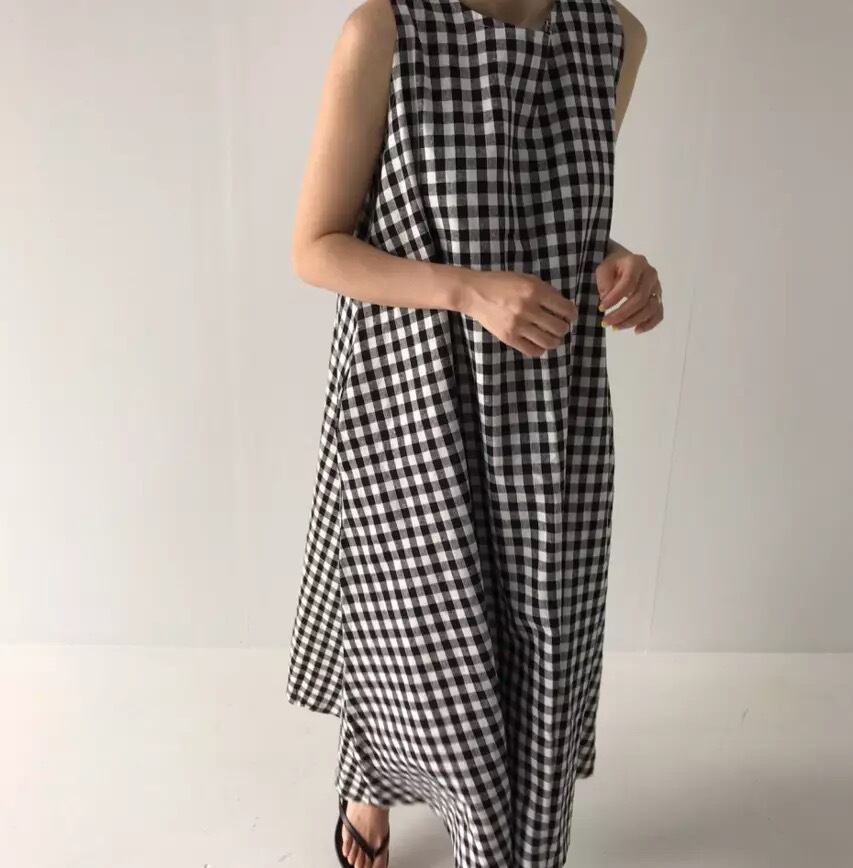 ◎【送料無料】2022春夏新作 チェック柄 ロング丈ワンピース ワンピース 体型カバー ノースリーブ レディース