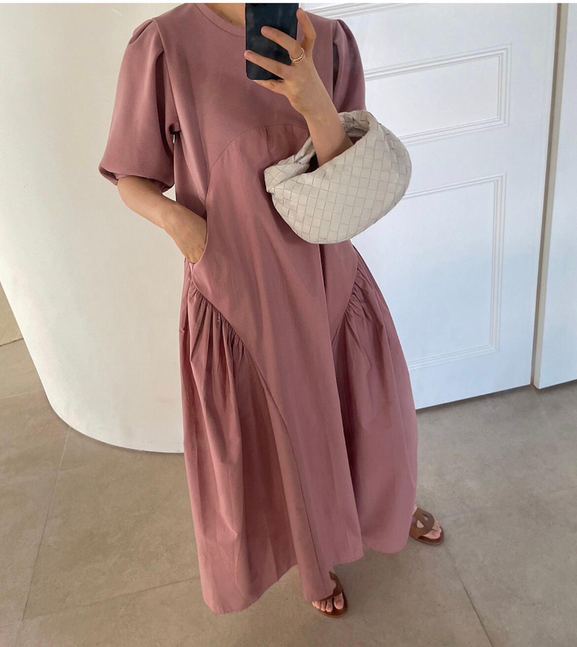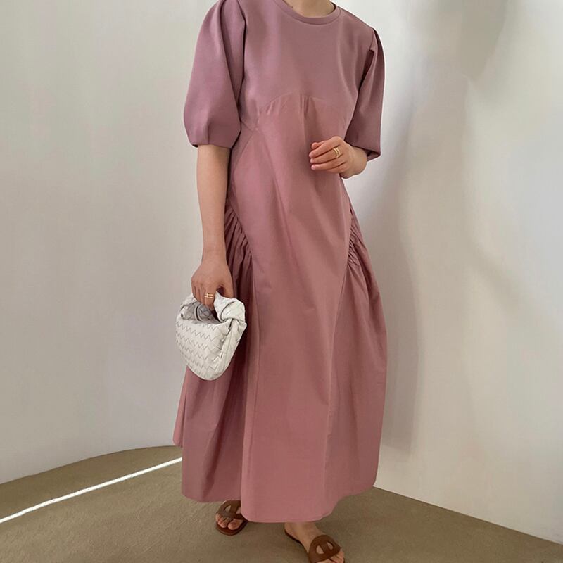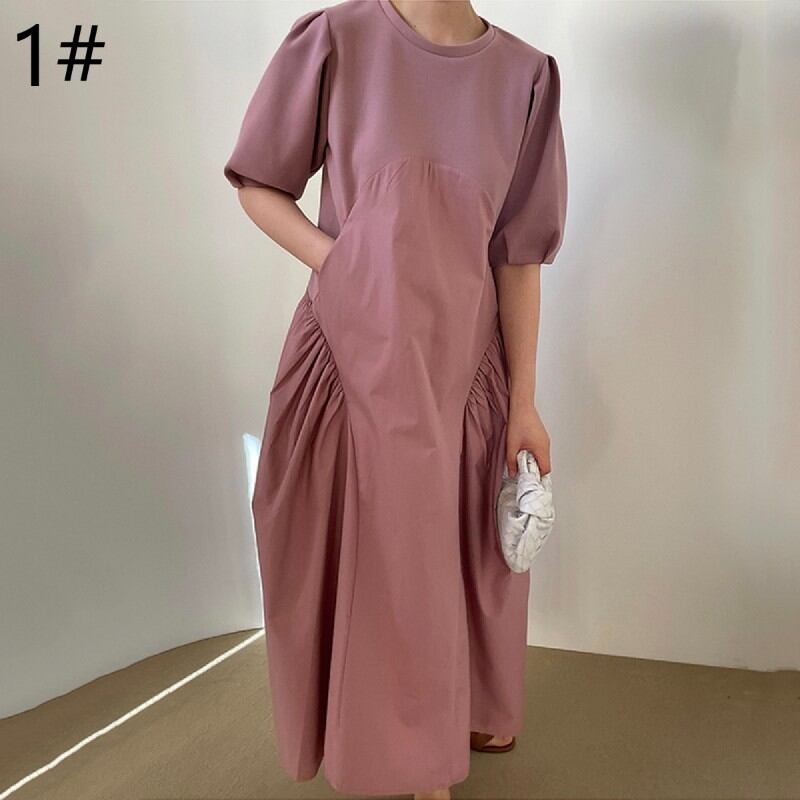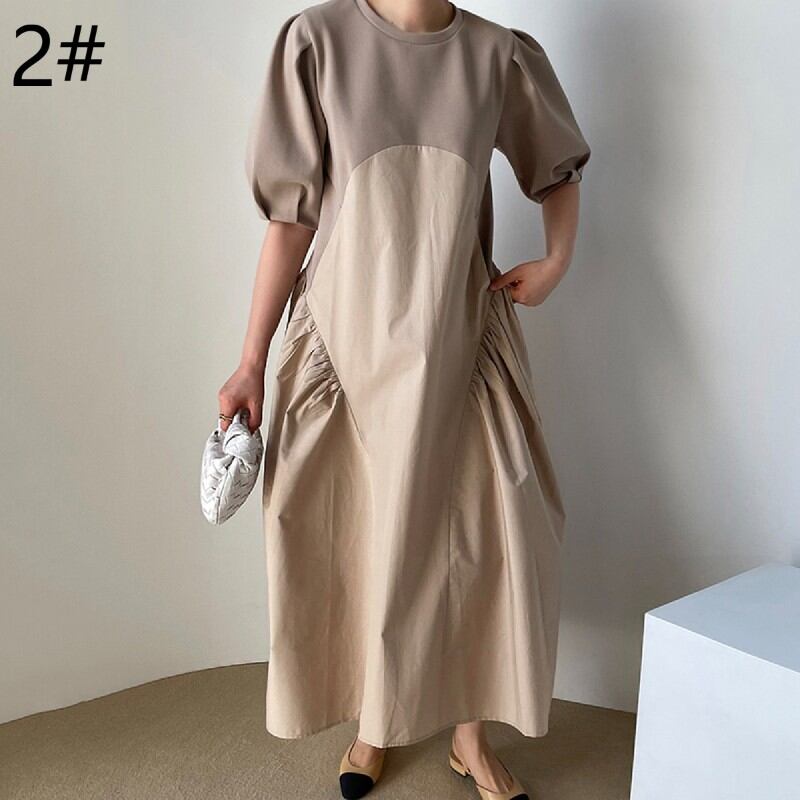 ◎【送料無料】2022春夏新作 韓国風 ロング丈ワンピース ワンピース レディース 体型カバー パフスリーブ 切替