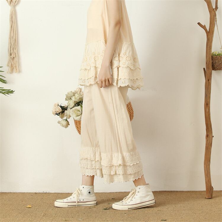 レディース sweet系 レース カジュアル 九分丈パンツ 小さい新鮮な ワイドパンツ