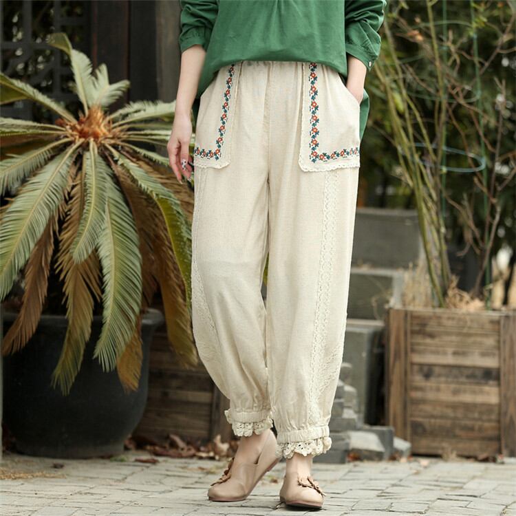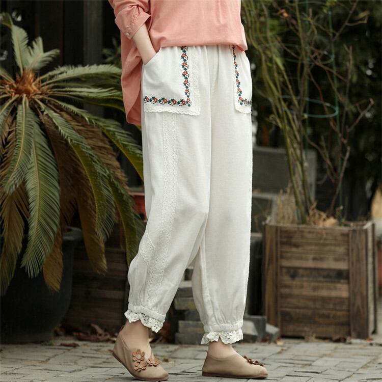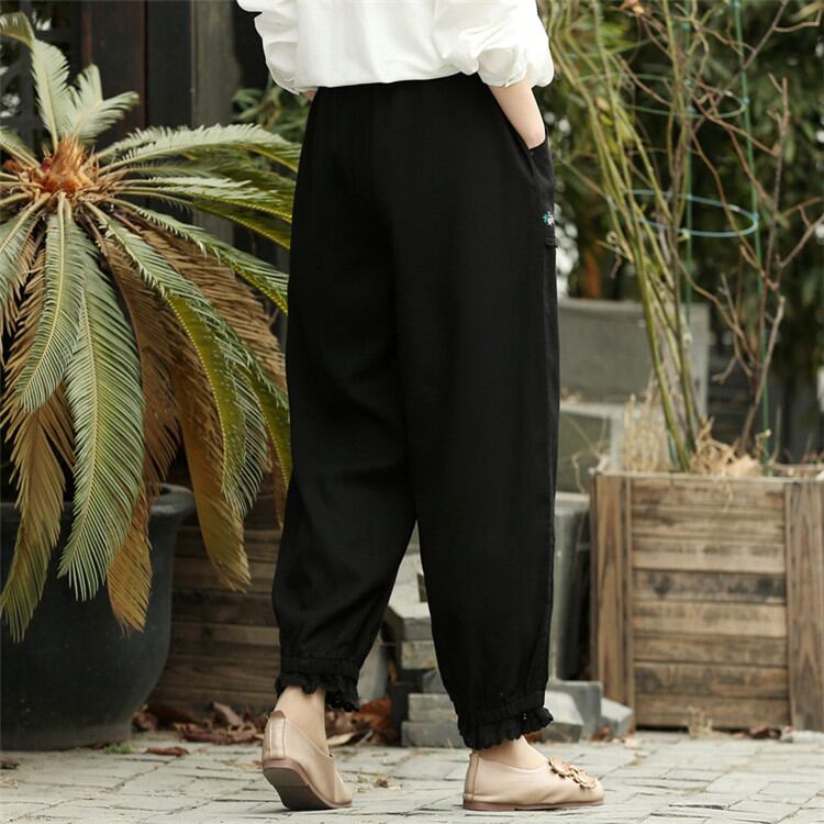 ししゅう シルク sweet系 ピュアカラー テーパードパンツ カジュアルパンツ