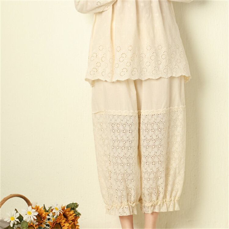 ◎【送料無料】ししゅう 縫付 透かし彫り ロングパンツ sweet系 カジュアルパンツ ゆったりする