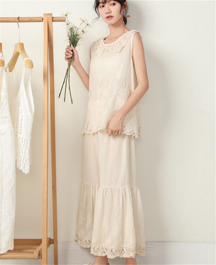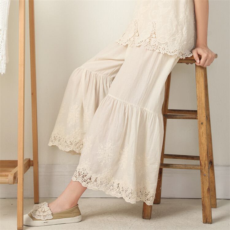 ◎【送料無料】九分丈パンツ ゆったりする 夏の新作 sweet系 ワイドパンツ ししゅう 大人気