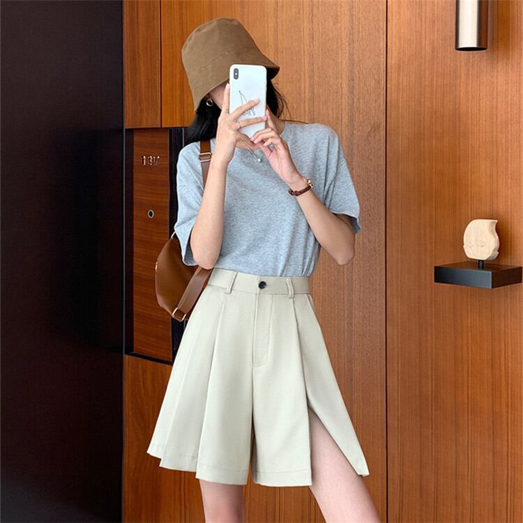 ◎【送料無料】ワイドパンツ 五分丈パンツ ゆったりする Aライン ショートパンツ ハイウエスト