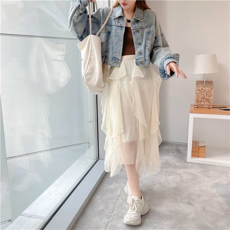 ◎【送料無料】2022年春夏新作 気質 中・長セクション スカート ハイウエスト レーヨン イレギュラー