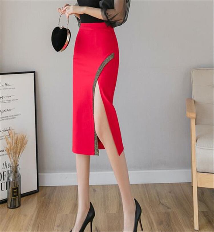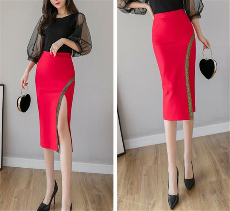 新品 セクシー 大きいサイズ 縫付 スプリット スリム タイトスカート レディース