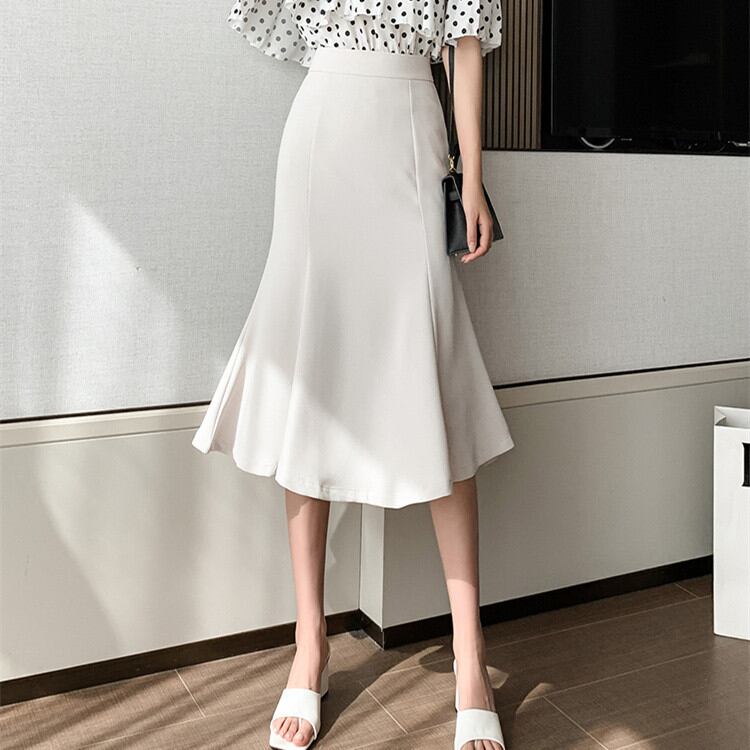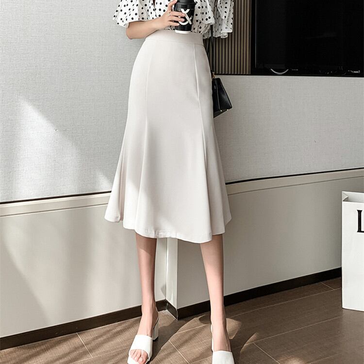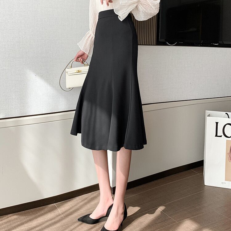 ◎【送料無料】イレギュラー 大きい裾 ハイウエスト 中・長セクション フィッシュテールスカート