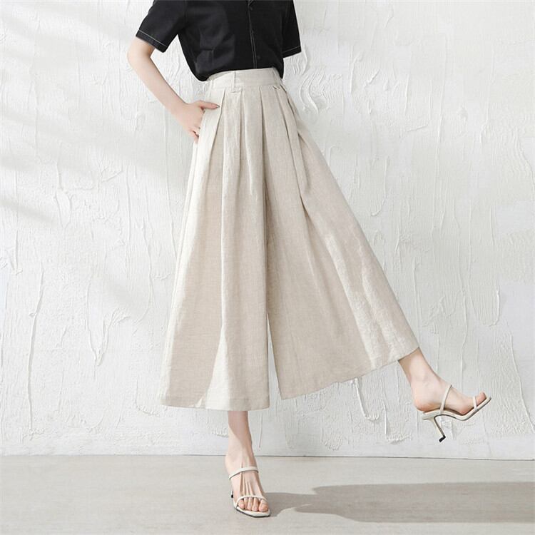 ◎【送料無料】ワイドパンツ 2022新作 七分丈パンツ コットン リネン 薄い スリム カジュアル