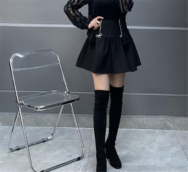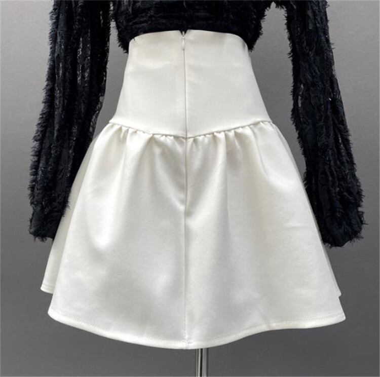 ◎【送料無料】スリム フォールド スカート Aライン 縫付 2022年春 ミニスカート ハイウエスト