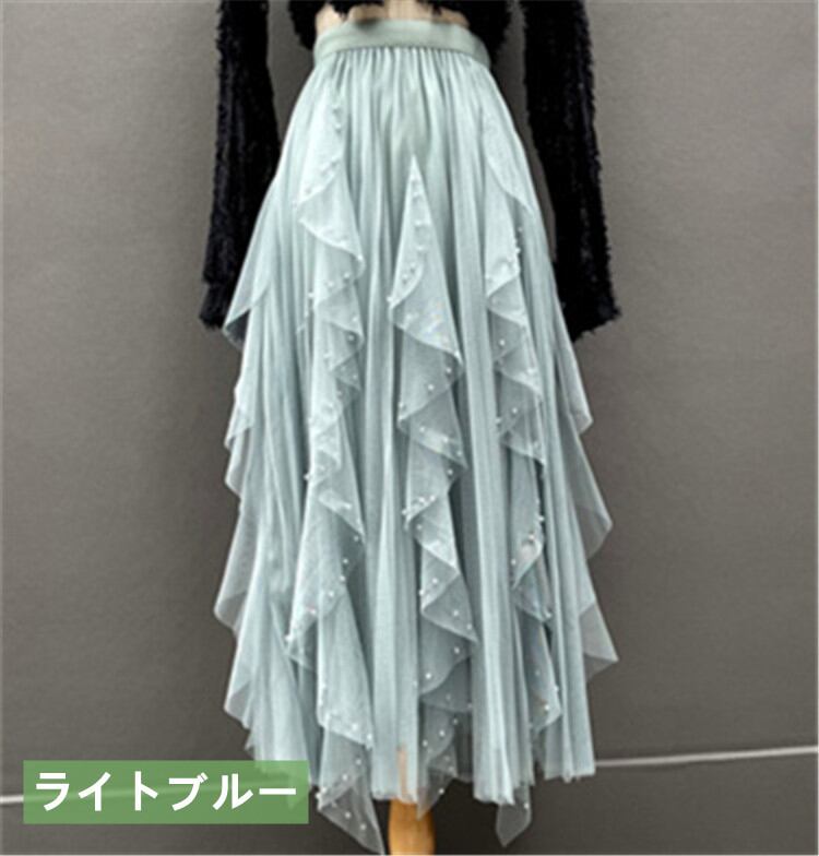 縫付 中・長セクション ピュアカラー 大人気 フリル スカート Aライン レーヨン
