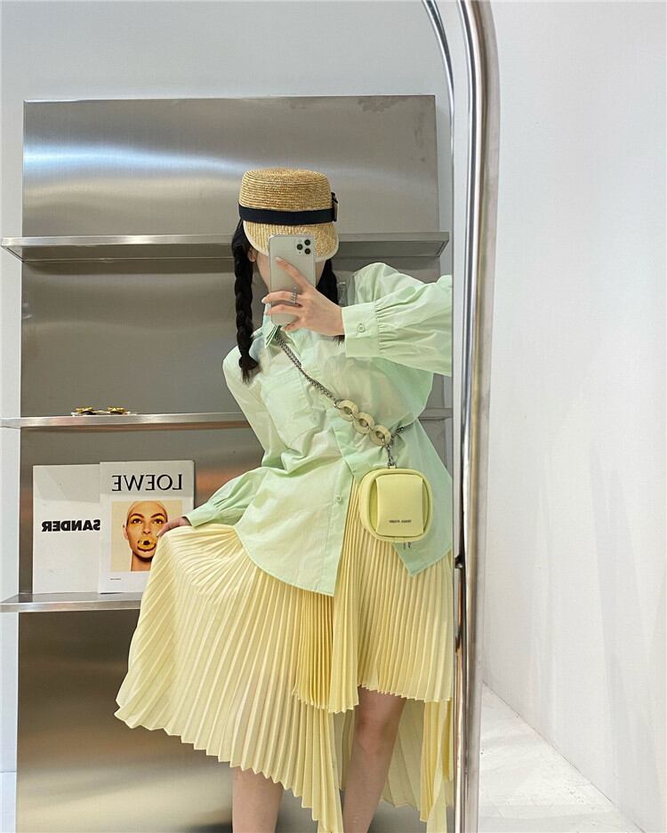 2022年春新作 中・長セクション ハイウエスト プリーツスカート レディース 気質