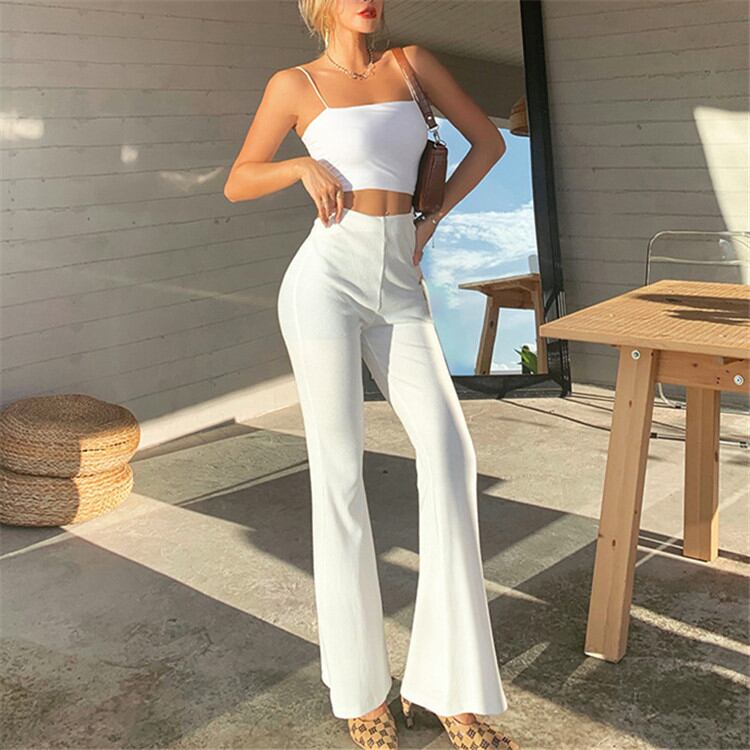 ピュアカラー ファッション 気質 カジュアル スリム ハイウエスト ワイドパンツ