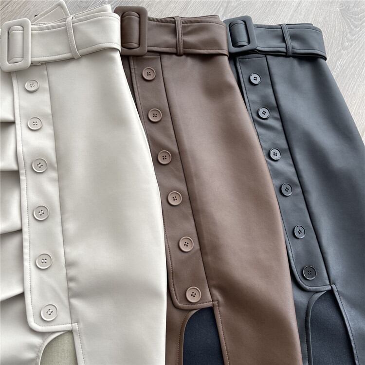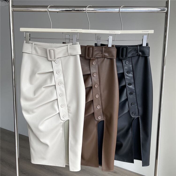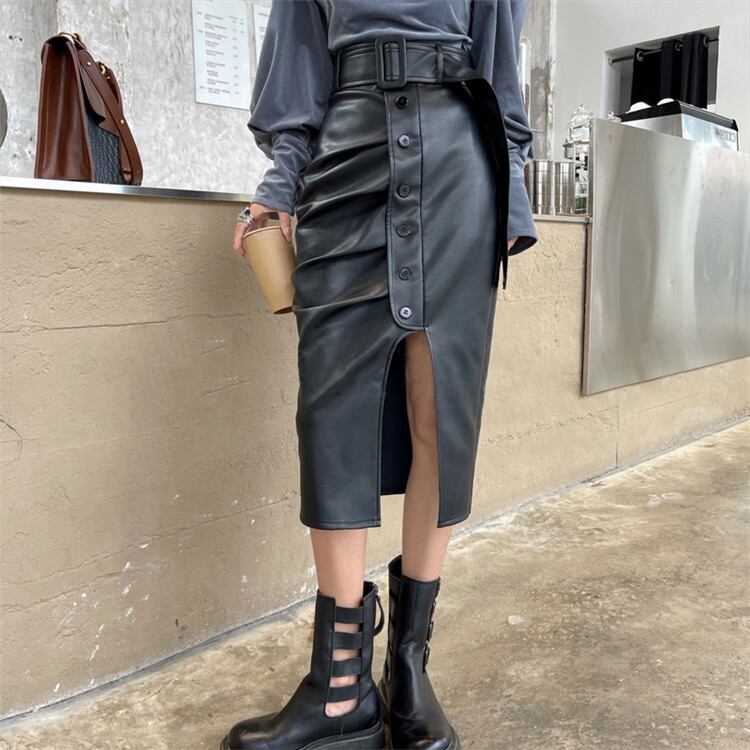 スプリット ハイウエスト スリム タイトスカート レザースカート 2022年春新作 気質