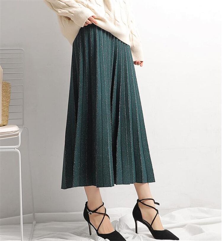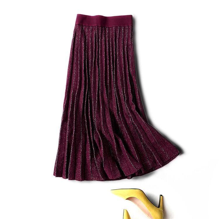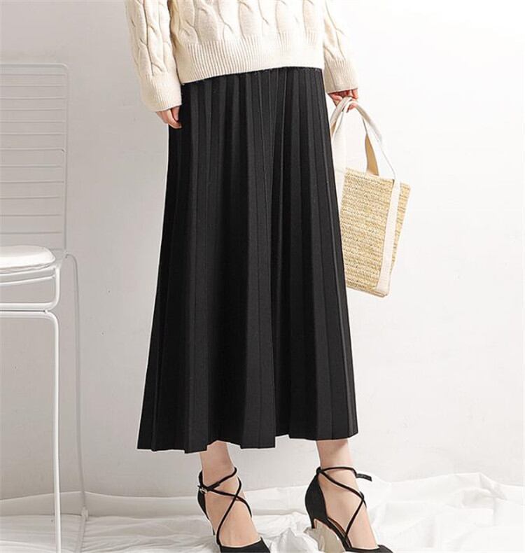 ◎【送料無料】プリーツスカート ロングスカート Aラインスカート ハイウエスト ニット スカート