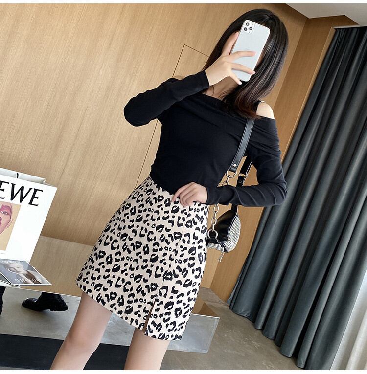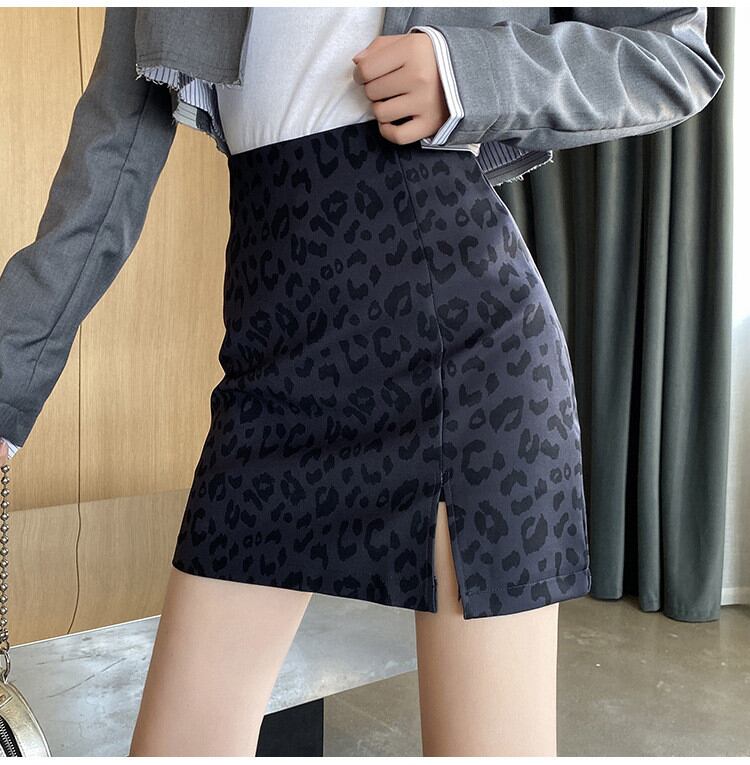 ◎【送料無料】豹柄 スカート タイトスカート スプリット ミニスカート Aライン ハイウエスト スリム