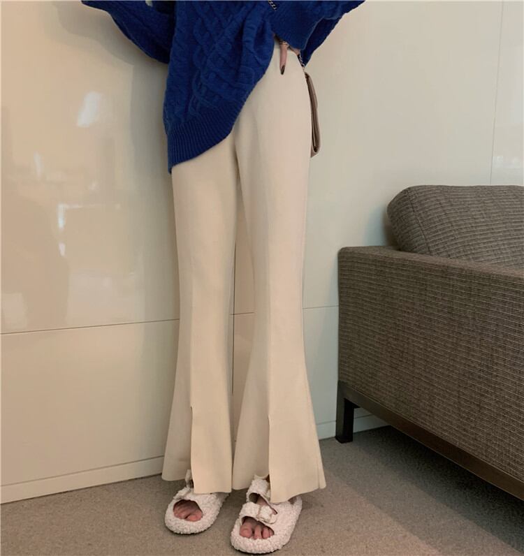 ワイドパンツ ニット ピュアカラー ロングパンツ 秋冬物 カジュアルパンツ 大人気 スプリット