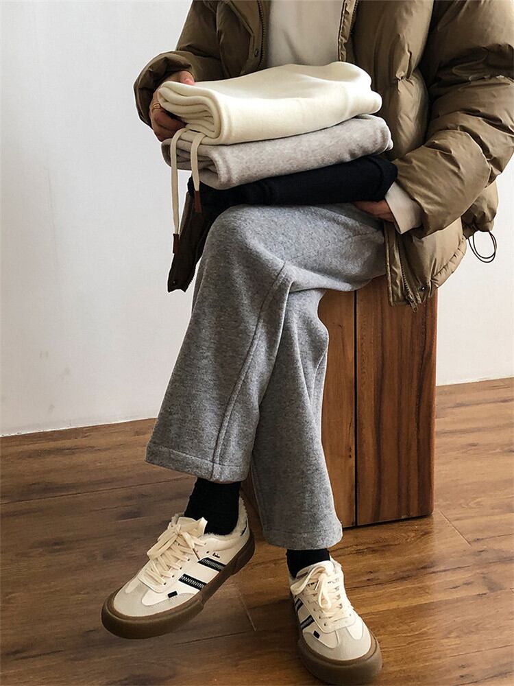 伸縮性のあるウエスト 大人気 暖かい 厚手 女性 ロングパンツ ピュアカラー