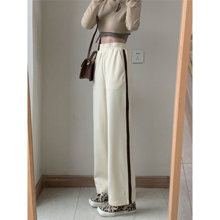 ファッション ワイドレッグパンツ 伸縮性のあるウエスト カジュアルパンツ