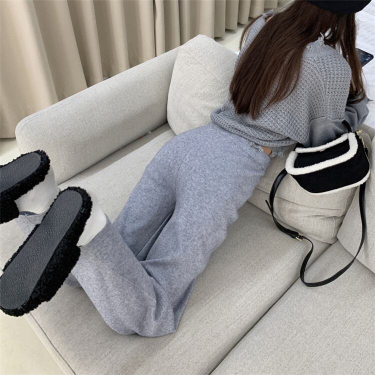 ◎【送料無料】満足度99% カジュアル ファッション レトロ ピュアカラー ワイドレッグパンツ ニットパンツ