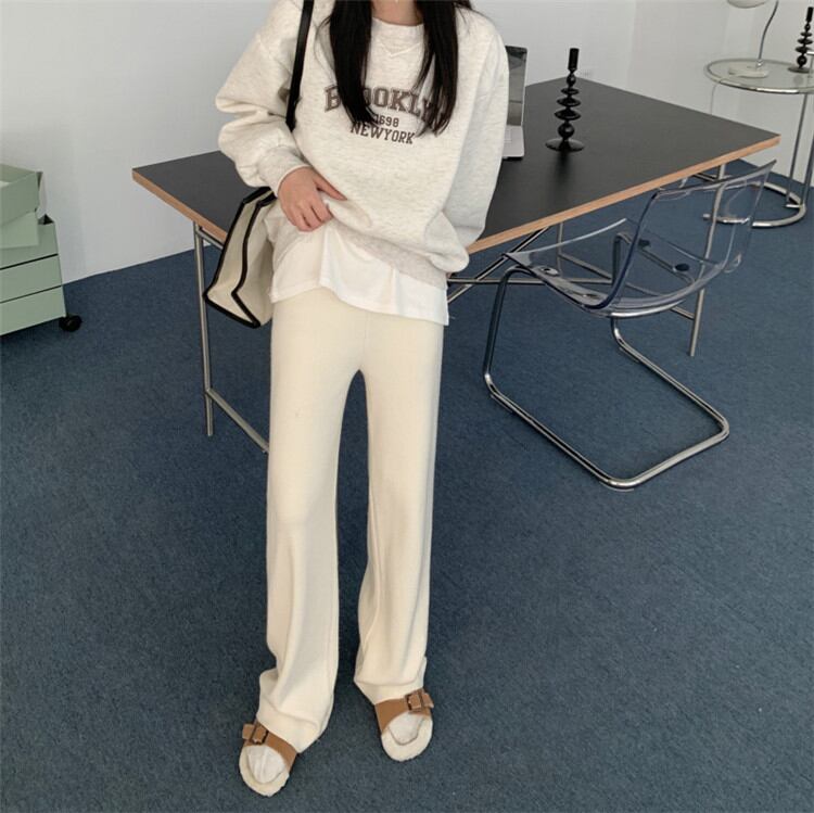 ファッション レトロ ピュアカラー ワイドレッグパンツ ニットパンツ ロングパンツ
