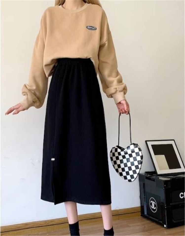 中・長セクション 2022スプリング ニュースタイル ハイウエスト スプリット ロングスカート 暖かい 厚手 Aラインスカート