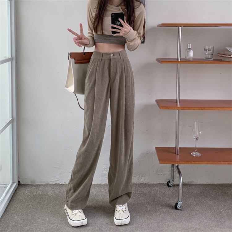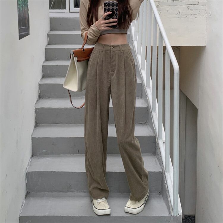 ◎【送料無料】細見えする ハイウエスト ゆったりする スリム コーデュロイ デザインセンス ロングパンツ