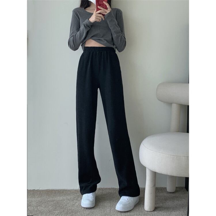 ワイドレッグパンツ 秋 ニュースタイル ハイウエスト スリム 伸縮性のあるウエスト カジュアルパンツ