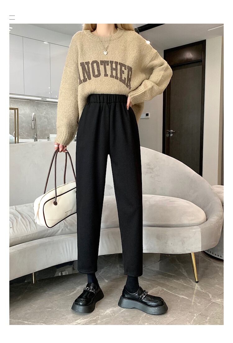 スリム 九分丈パンツ テーパードパンツ 暖かい 厚手 カジュアル