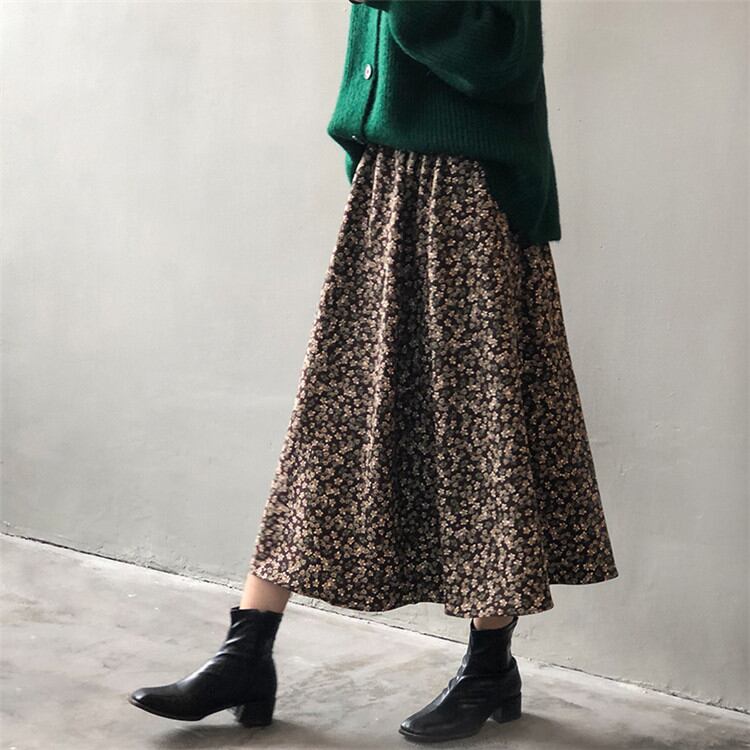 フローラル 女性 2021年冬 新作 韓国語 レトロ エレガント 中・長セクション スカート ヤングスタイル