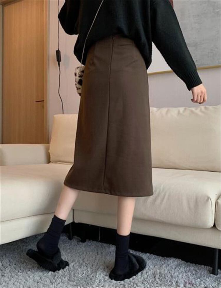 シンプル 気質 ロングスカート ショートスカート 女性 ハイウエスト スリム Aライン エレガント