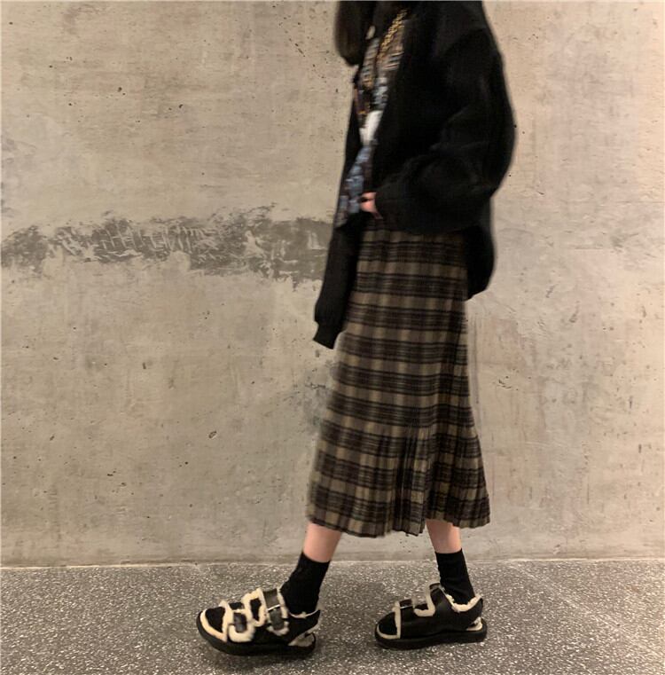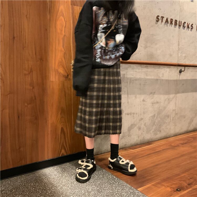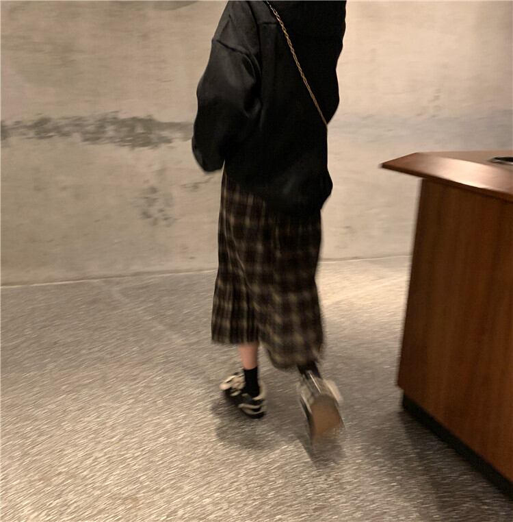 ゆったりする レトロ 気質 チェック柄 中・長セクション スカート 女性 怠惰な風