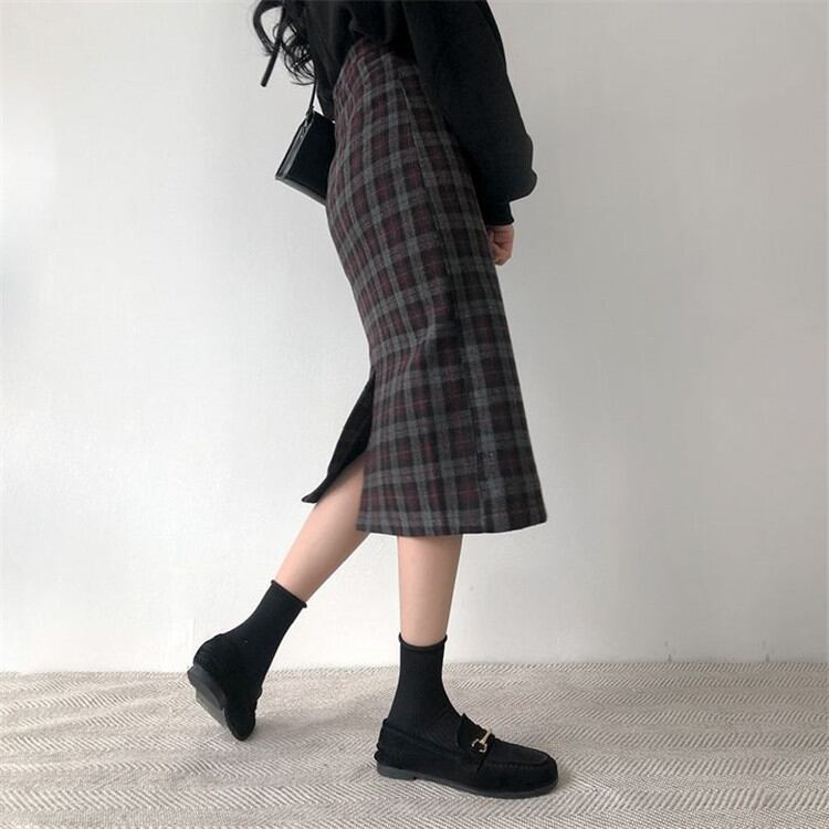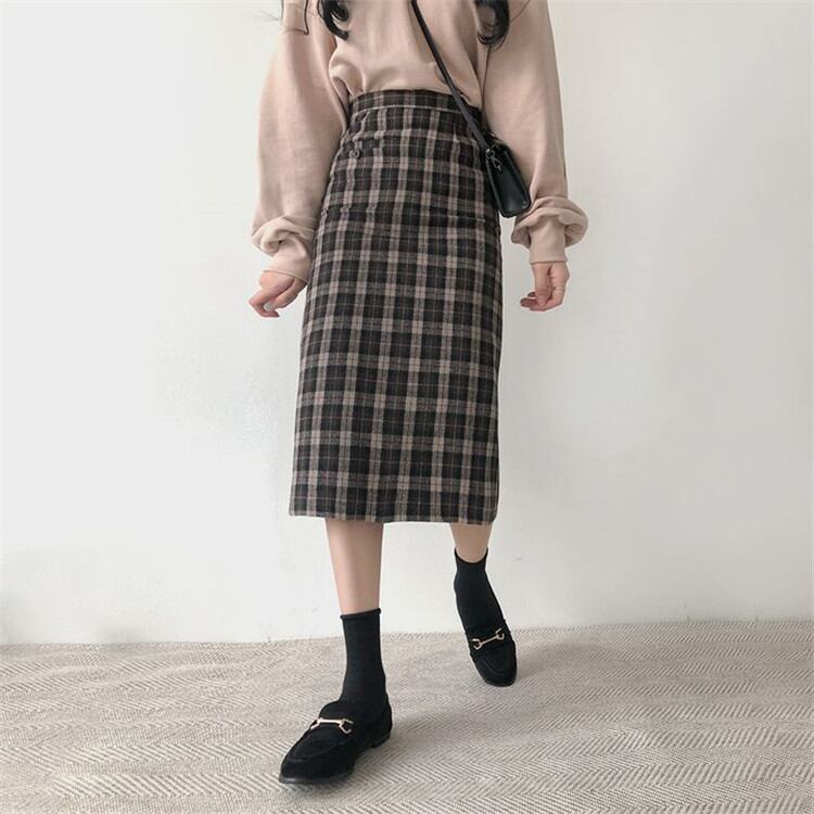 チェック柄 ハイウエスト タイトスカート スカート 中・長セクション 学院風 カジュアル 大人気